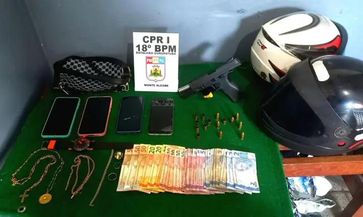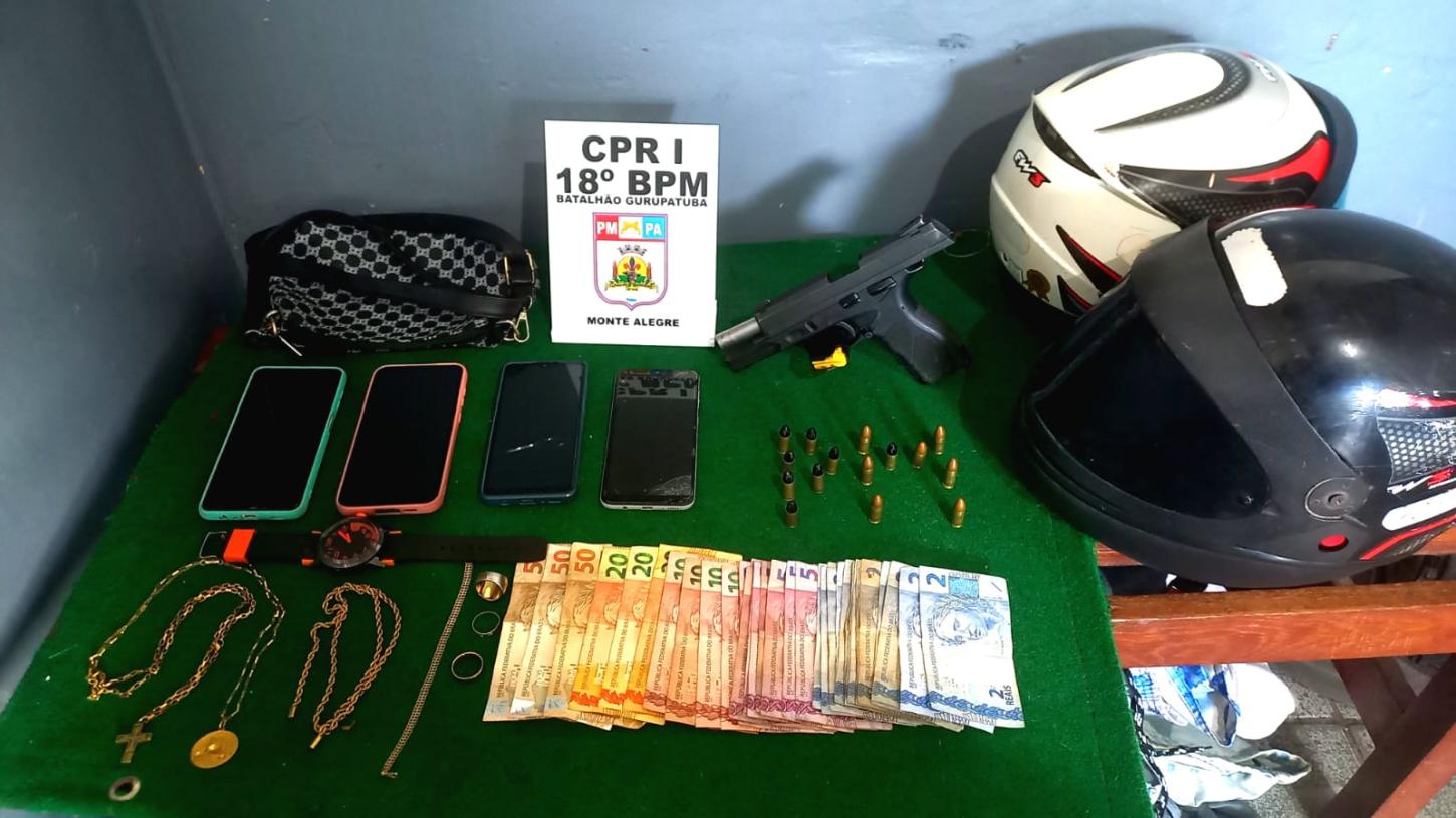 Todos os materias subtraídos das vítimas foram recuperados. Os acusados, a motocicleta e arma de fogo foram apresentados a autoridade policial para providências cabíveis.