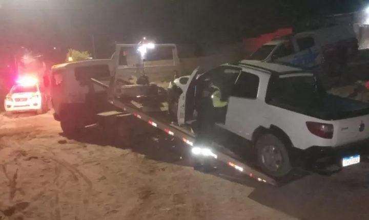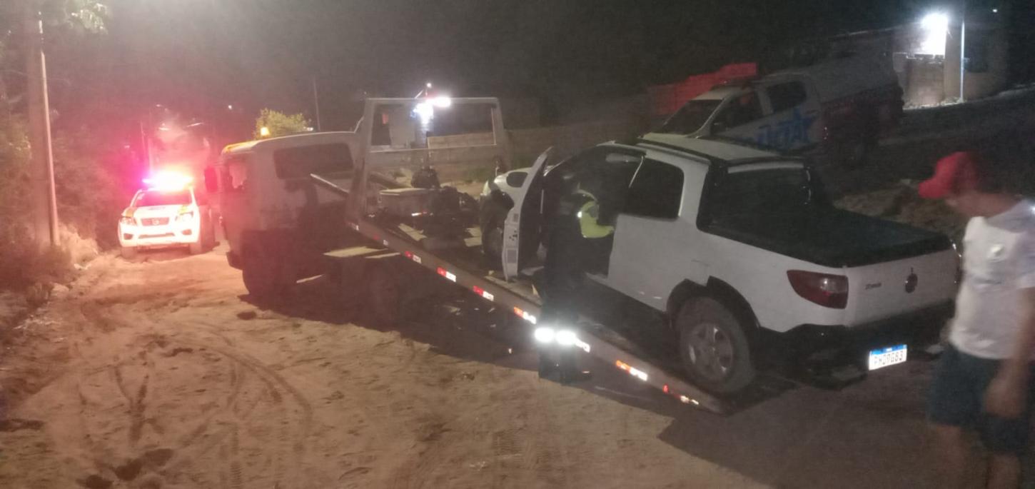 - 01 veículo Strada Branco (PHD 9G83). Em seguida os policiais fizeram o cerco mais devido ruas praticamente intrafegáveis nos bairros adjacentes e mesmo com as dificuldades os policiais com apoio do BME e do Grupamento de Moto Patrulhamento que conseguiu encontrar o veiculo roubado já no bairro Ipanema na Travessa Diogo Costa em um local conhecido como "Buracão do Ipanema" local de difícil acesso onde um dos pneus do carro estourou e os vagabundos abandonaram o veiculo, no local já havia outro carro a esperar dos assaltantes que fugiram em alta velocidade.