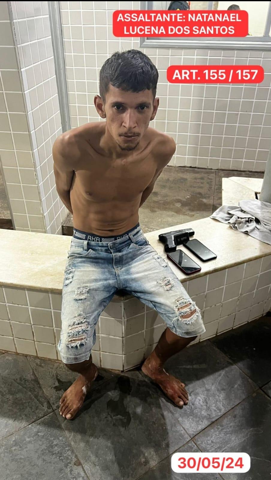 Os policiais também encontraram com ele, dois aparelhos celulares e um simulacro de arma de fogo, similar a pistola. O indivíduo foi conduzido à delegacia e identificado como Natanael Lucena dos Santos. Mais uma vez parabéns aos policiais envolvidos nesta ação que culminou com a prisão dos envolvidos e na recuperação dos objetos roubados.