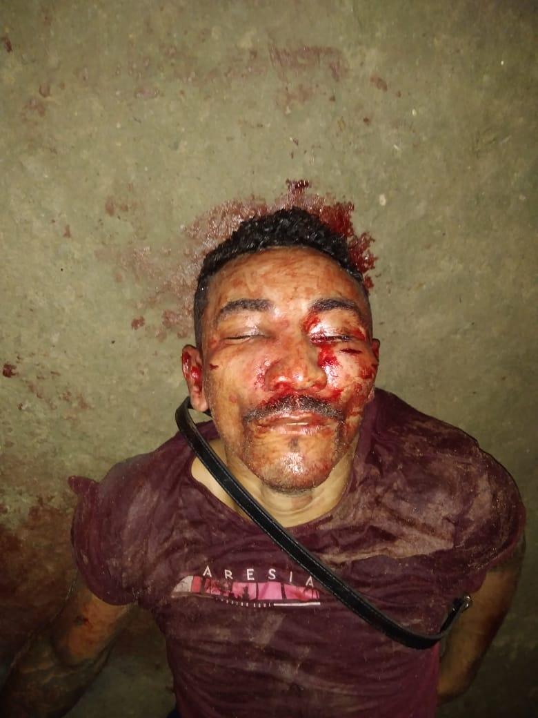 A guarnição ao comando do Sargento Jairo se deslocou até o local onde foi confirmado a ocorrência. Trata-se do indivíduo ARLISSON VASCONCELOS DOS SANTOS vulgo "Barnabé" que se encontrava lesionado por Populares e com o acusado foi encontrado uma arma branca, 01 Lava Jato STIHL, 07 Camisetas e 02 pares de Sandálias KENNER. Uma viatura do SAMU foi até o local e conduziu a vitima bastante lezionada ao PSM.