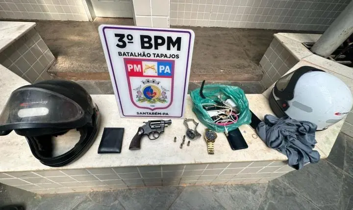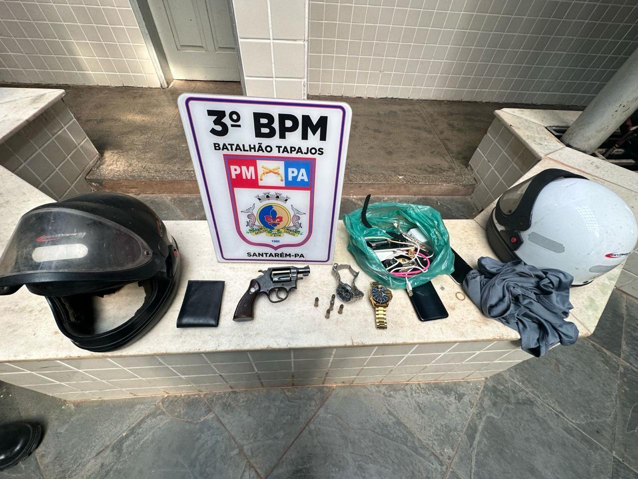 Rapidamente as guarnições do 3° BPM e BME entraram em ação e fizeram buscas nas proximidades para a captura dos suspeitos, em seguida a polícia localizou a dupla na Rua Alameda 17, em uma vila onde foram localizados com os mesmos: Um revólver calibre 38 com 5 munições, além de dois relógios, sendo um da vítima; dois celulares ,dois capacetes, carregadores de celular, e a chave do carro da vítima.