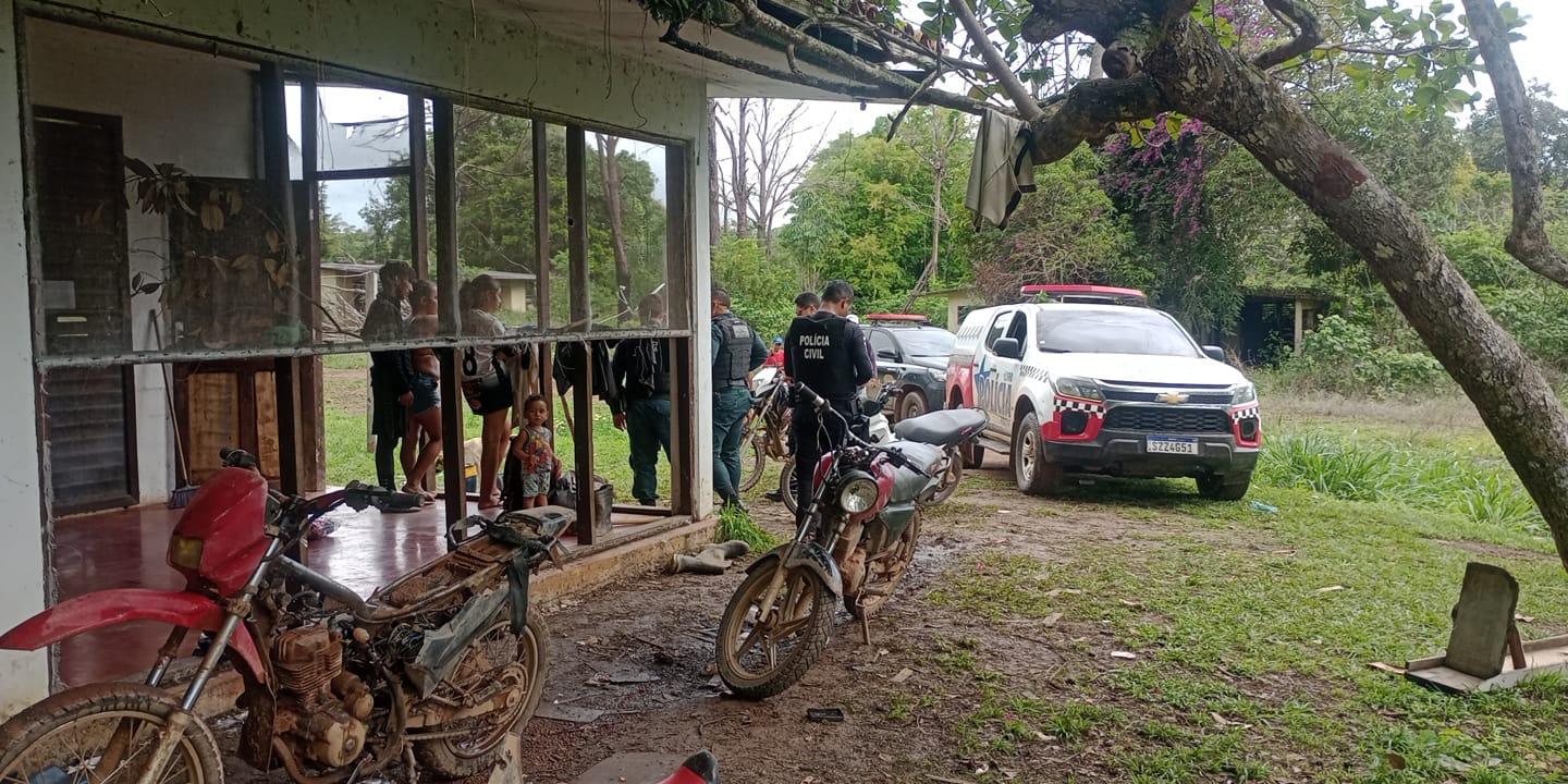 Já no local uma ds partes disse para a policia que estariam tentando tomar suas terras, inclusive proferindo ameaças contra sua pessoa e seus familiares, mediante uso de arma de fogo. Já no local , na residência dos suspeitos um deles de nome VALDECI VILHENA DOS SANTOS, encontravam-se no local tanto este quanto RAIMUNDO VILHENA DOS SANTOS, foram surpreendidos ´pelos policiais na posse de 03 (três) armas de fogo do tipo espingarda, sendo: 01 (uma) espingarda calibre "28", 01 (uma) espingarda calibre "32" e 01 (uma) espingarda calibre "36", todas com numeração ilegivel, no local a policia tambem aprendeu cartuchos das armas , as informações de que RAIMUNDO VILHENA DOS SANTOS ainda tentou se evadir do local mais foi contido por policiais, na sequencia as partes foram conduzidas e apresentadas na delegacia da Policia Civil.