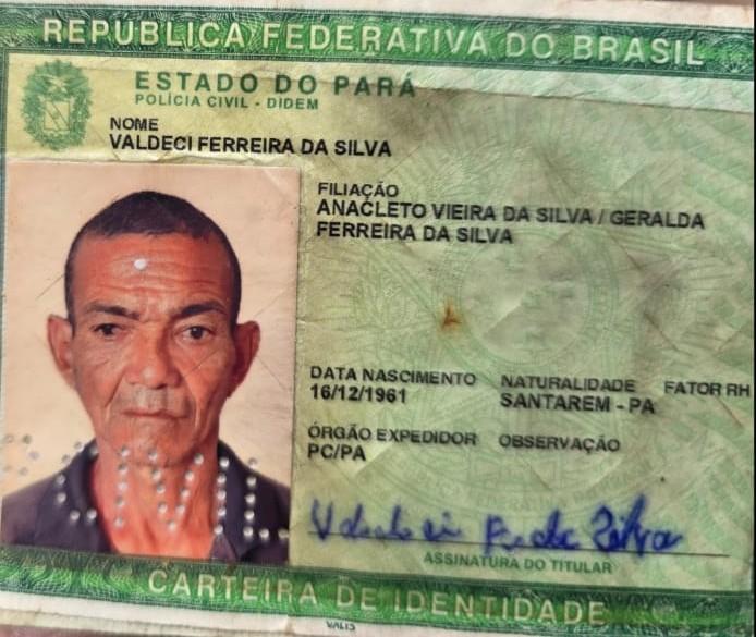 Horas depois a vitima foi identificada através de informações colhidas por nossa equipe , tratava-se pelo nome de Valdeci Ferreira da Silva de 63 anos de idade, conhecido por "Cearazinho". Ele que praticamente morava em uma oficina mecânica fluvial da cidade, não tinha parentes em Santarém mais como era uma pessoa boa e trabalhadora foi acolhido pelo dono da oficina onde lá ele ganhava seu dinheiro e ajudava no local. As informações que desde a noite passada ele não teria voltado para a oficina onde ele dormia.