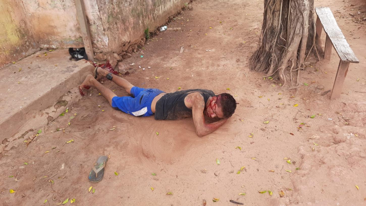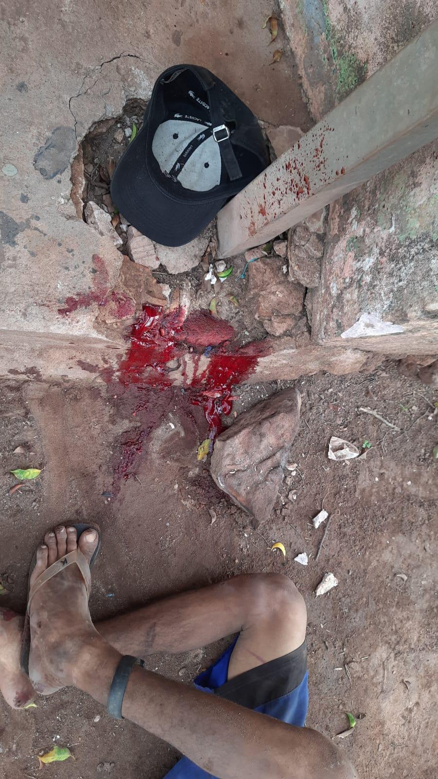 O mesmo estava com uma lesão na região da cabeça, segundo informes, usaram como instrumento uma pedra. Ninguém informou quem o lesionou. O SAMU realizou o primeiro atendimento, e conduzido ao HMS. Foi solicitado apoio da guarnição PM para escoltar a vtr do SAMU até o hospital , foi realizado sem alteração.