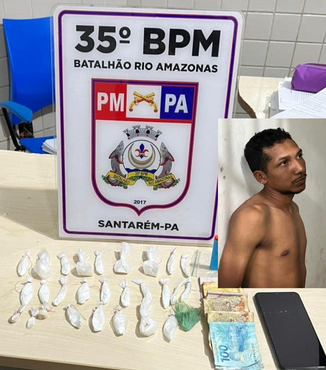Madrugada de domingo para Segunda feira (31) por volta de quase 03 : 00 horas da madrugada homens do 35º BPM em rondas nas proximidades da Avenida Curuá-Una , quando em uma abordagem em frente a uma casa noturna um indivíduo de nome Flávio Oliveira Nascimento foi abordado pelos policiais e com ele foi encontrado 27 papelotes de cocaína e mais uma quantia em dinheiro de R$ 467,00 , o mesmo ainda tentou se evadir mais foi preso e apresentado na 16ª Seccional da Polícia Civil.