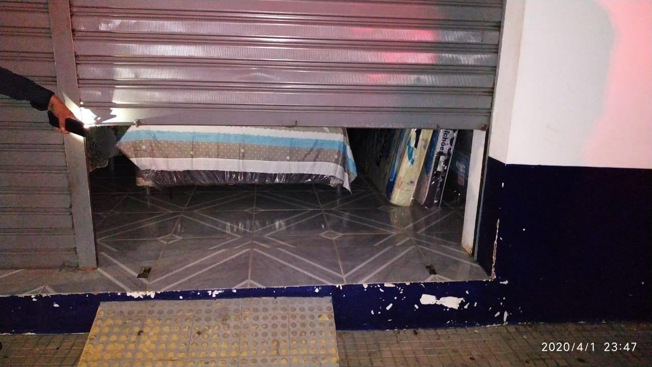 As informações repassadas a nossa equipe foram de que uma loja foi arrombada por vagabundos.