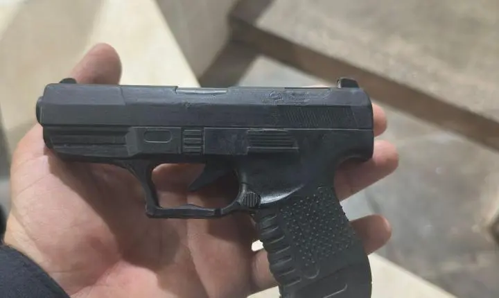 Uma guarnição da PM ao comando do Sargento Adriano e Cabo Kennedy foi acionada e feito o certo para capturar o indivíduo, vindo ser abordado na Av Rui Barbosa, as proximidades do Praça São Sebastião, recuperando o Aparelho Celular e fone de ouvidos roubados, apreendendo um simulacro de arma de fogo.
