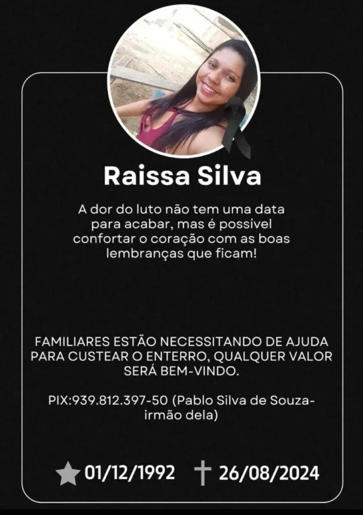 Apoio Necessário: Familiares estão precisando de ajuda para custear o enterro. Qualquer valor será bem-vindo. PIX: 939.812.397-50 (Pablo Silva de Souza – irmão da vítima)