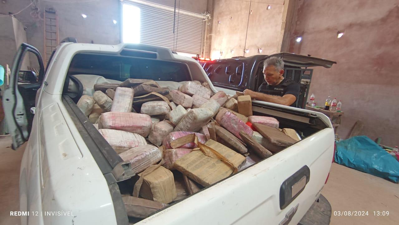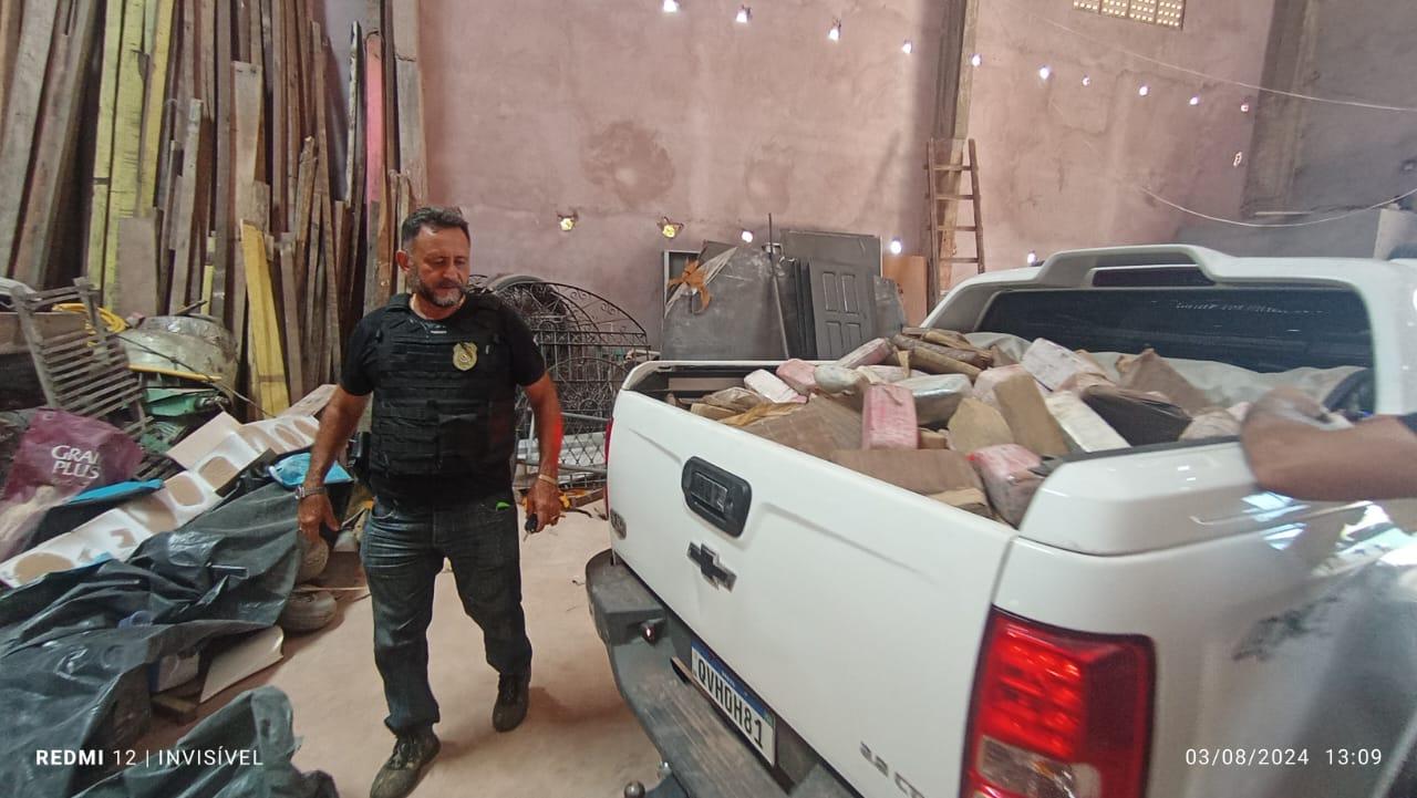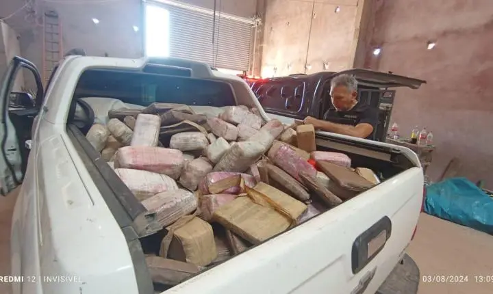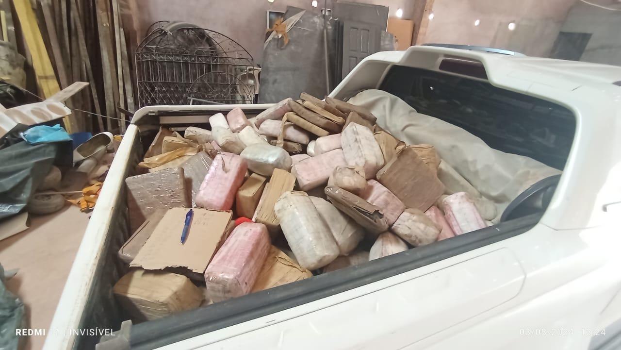 Uma vasta quantidade de entorpecentes 313 tabletes de material entorpecente, aparentemente maconha, 01 cilindro contendo cerca de 100 kg de pedras, tratando-se de Oxi, totalizando aproximadamente meia tonelada de entorpecente, além de um veículo marca Chevrolet, modelo S10, placa QVH 0H81, cor branca, dois aparelhos celulares e outros artefatos provavelmente utilizados para o preparo da droga.