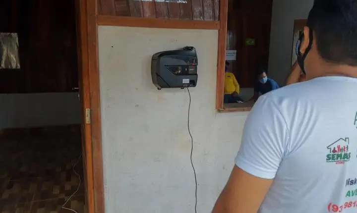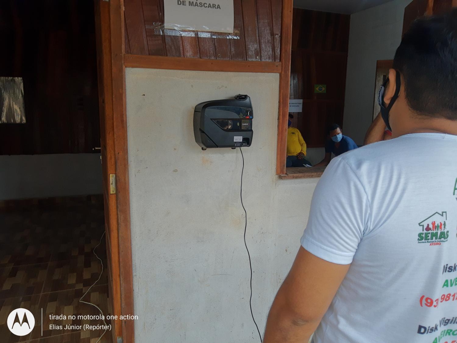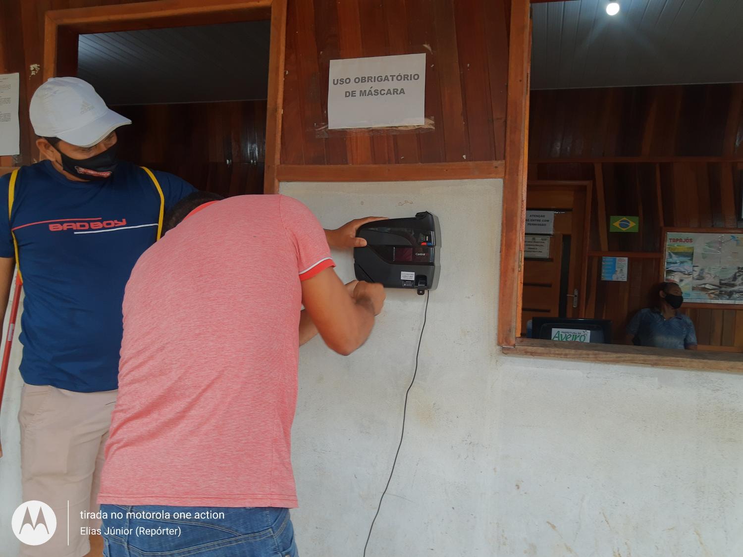 Registramos em Fordlândia a colocação do sistema que chamou atenção de pessoas que estavam nas dependências do setor administrativo da PMA.