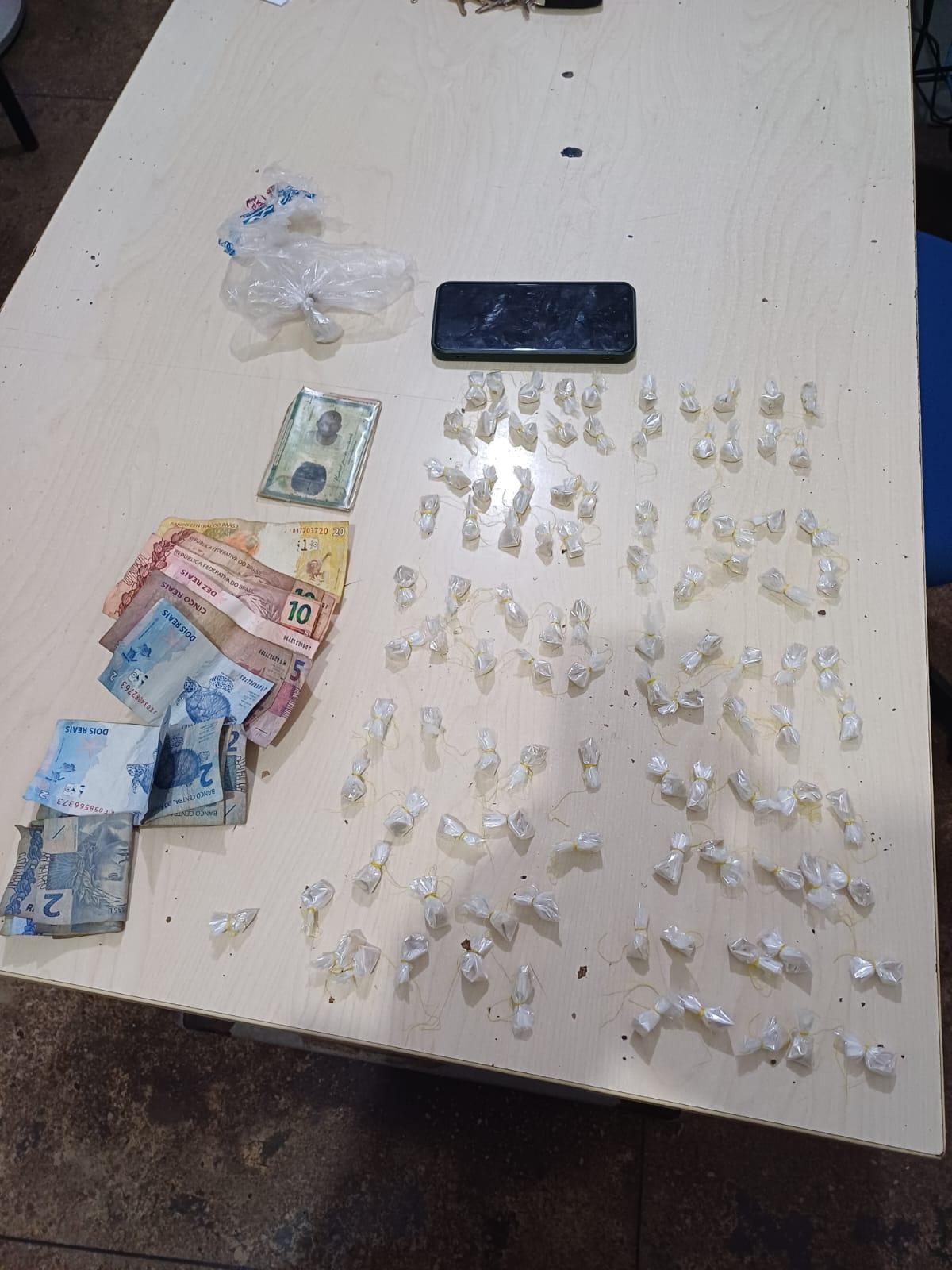 Por volta das 19 : 00 Horas a PM foi acionada para uma suposta ocorrência na Avenida Tapajós aonde um individuo estaria comercializando entorpecentes em praça publica. De posse das informações uma guarnição do 3º BPM se deslocou até o local onde na Praça São Sebastião um individuo de nome Júlio Cesar Rodrigues Silva "Corujito" foi abordado e com ele os policiais do 3º BPM conseguiram encontrar uma quantidade de material entorpecentes, totalizando 101 papelotes de Crack e uma quantia de R$ 118,00 em dinheiro.