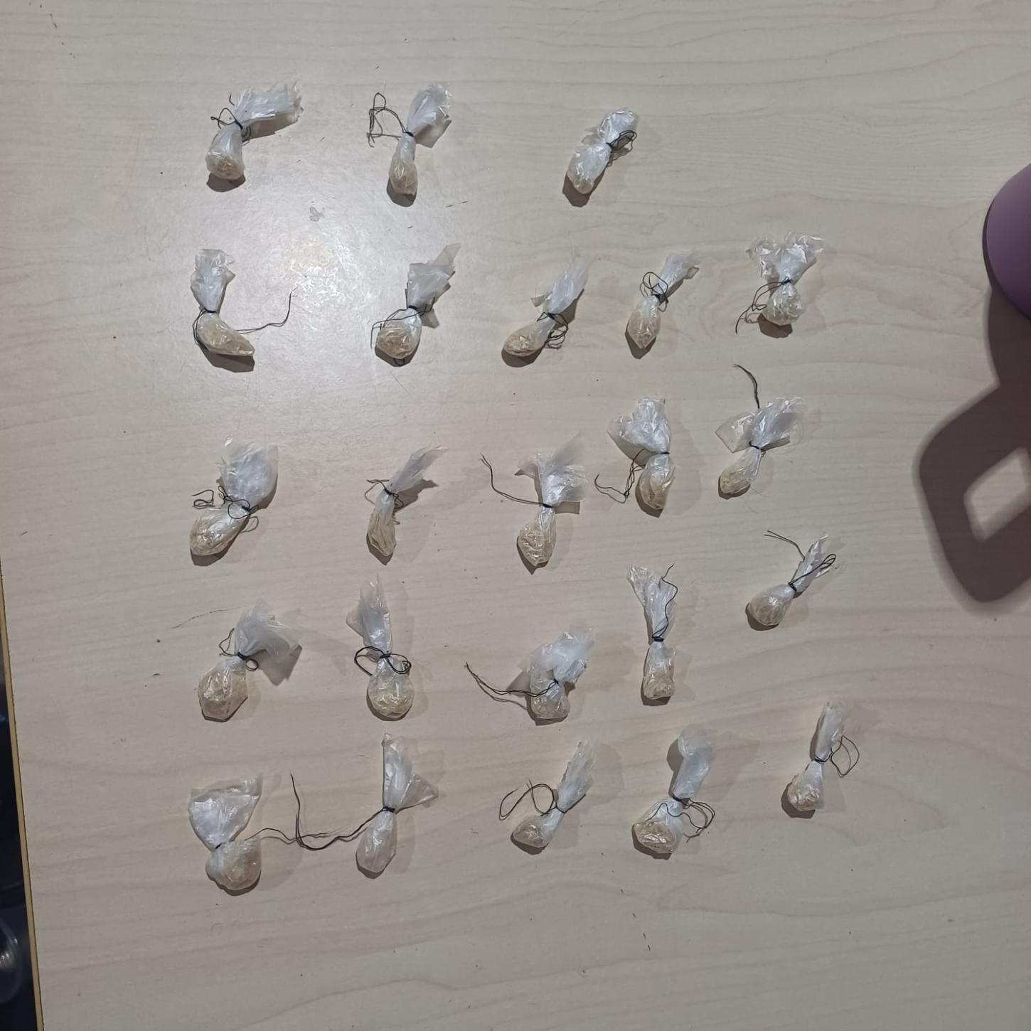 Em seguida foi abordado e com ele a PM encontrou um saco plástico com 23 papelotes de substancia de entorpecentes tipo Crack. Ele foi preso e foi apresentado na 16ª Seccional de Policia Civil.