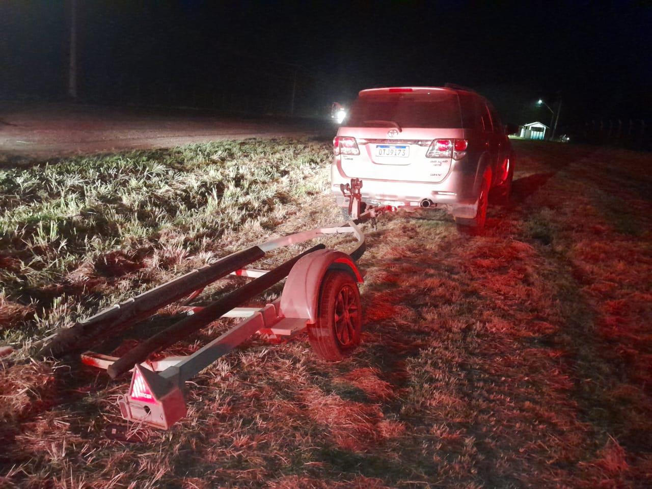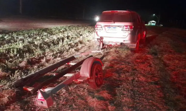 Minutos depois uma viatura do Recobrimento visualizou o veiculo na Comunidade São Braz em alta velocidade, seguindo em direção a Nova Moaçara, onde já havia um cerco policial na tentativa de abordar o veiculo que ao passar nas imediações na Nova Moaçara com a Travessa resistência a camionete em fuga atingiu violentamente um motoqueiro que passava no local destruindo totalmente a moto do cidadão e quase tirando a vida do mesmo. Mesmo com a colisão com a moto o motorista do carro não parrou o carro sendo acompanhado pelas viaturas e já na Cuiabá no bairro da Matinha, devido a alta velocidade o Jet-ski que estava no reboque da camionete desatrelou e ficou em via publica , causando situação estrema de perigo.