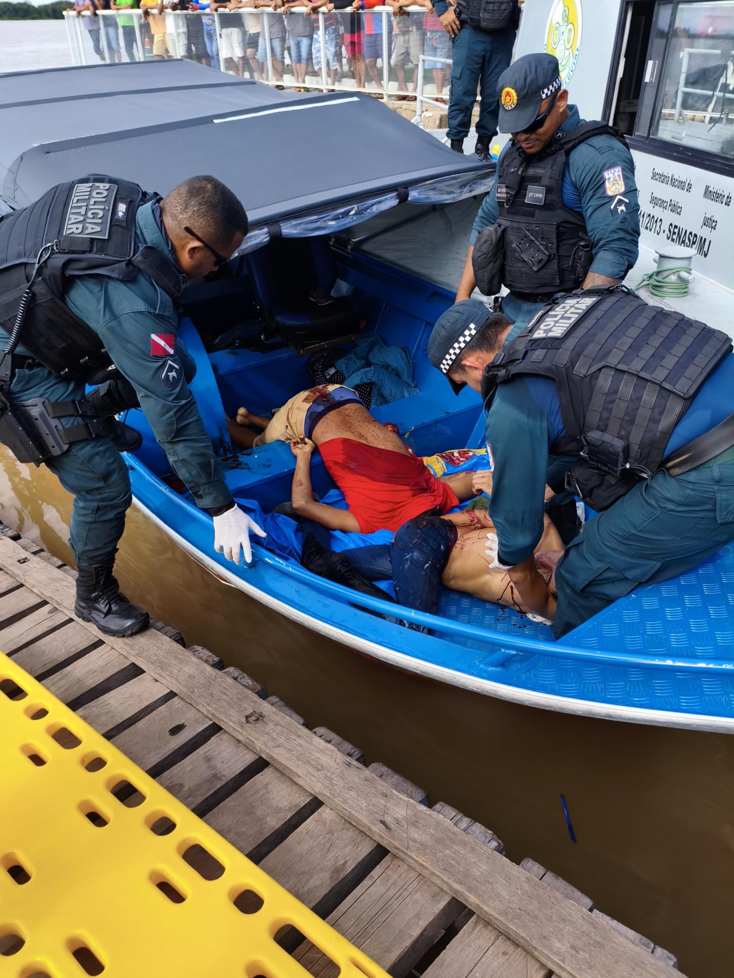 Em Imediato os policiais entraram em ação em resposta à injusta agressão, foi feito o revide resultando na neutralização de dois indivíduos. segundo informações colhidas pelo site mm terceiro suspeito saltou no rio e fugiu para destino ignorado. em seguida foi feita uma varredura dentro da embarcação onde a PM encontrou , aproximadamente 35 kg de substância tipo oxi (em tabletes), que estava na lancha de cor azul com motor Suzuki 100 HP, mais 08 carotes de combustível.